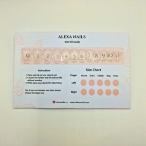 te permite conocer tu talla exacta antes de comprar cualquier set de uñas press on de Alexa Nails.
